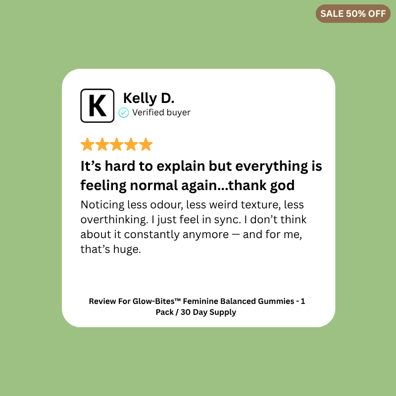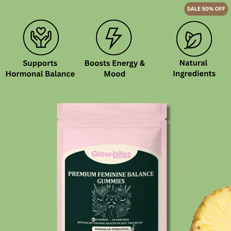 Glow-bites™ Feminine Balance Gummies — crafted to help women feel fresh, confident, and balanced every day.
