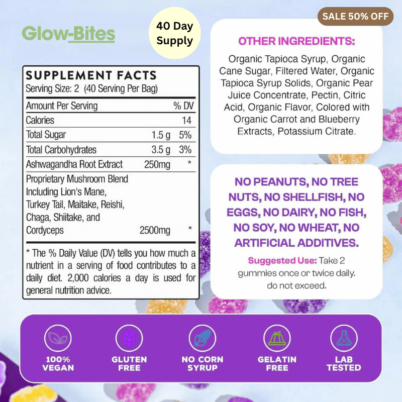 Yes! Glow-bites™ Mushroom Gummies arevegan-friendly, made without artificial additives, and lab-tested for purity.