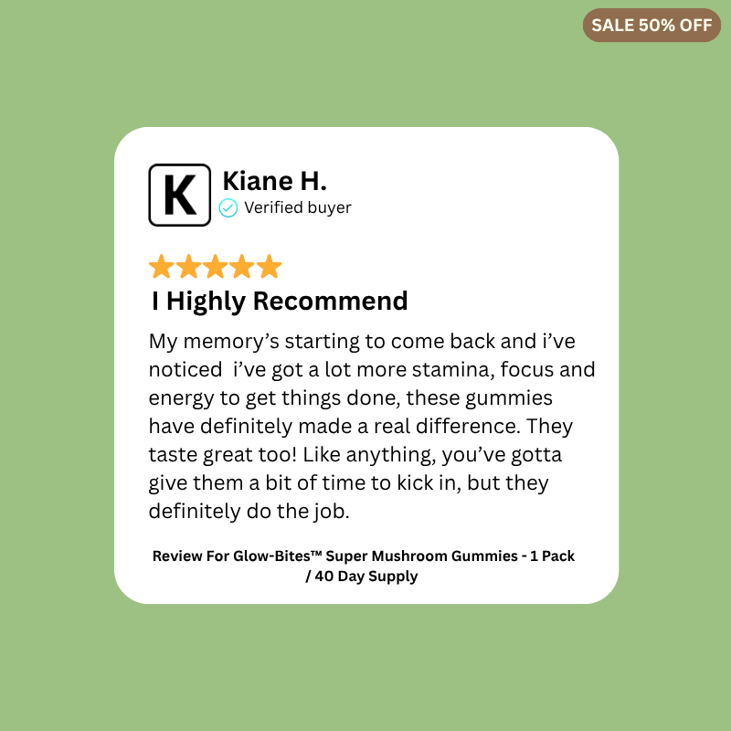 Glow-bites™ Super Mushroom Gummies deliver calm focus, steady natural energy, and mental clarity — without caffeine or crashes.